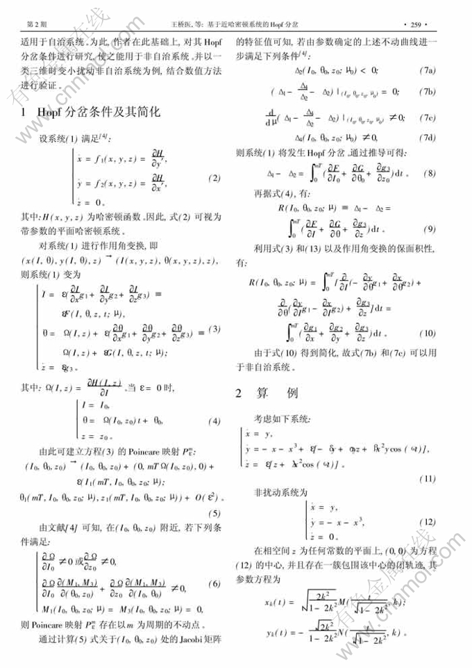 Key words:nonlinear dynamics; perturbation; time-dependent; Hamiltonian system; Melnikov method; Hopf bifurcation