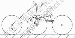 力偶之间的距离,即力臂,m;G为作用在轮组上的重力,计算中按1/4车质量,N;l1为J与J0在水平方向上的距离,m;Gw为轮胎质量,N。