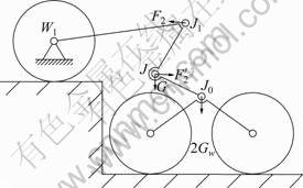 力偶之间的距离,即力臂,m;G为作用在轮组上的重力,计算中按1/4车质量,N;l2为J与W1在水平方向上的距离,m。