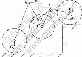 力偶之间的距离,即力臂,m;G为作用在轮组上的重力,计算中按1/4车质量,N;l4为J与W3在水平方向上的距离,m。