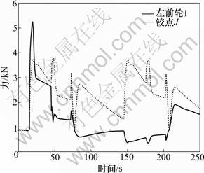 Fig.9 Curve of X-component dynamics characteristic for left front wheel and joint J