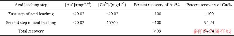 Table 5 Percent recovery of Au and Cu and their concentrations in acid-leaching solutions of zinc powder replacement