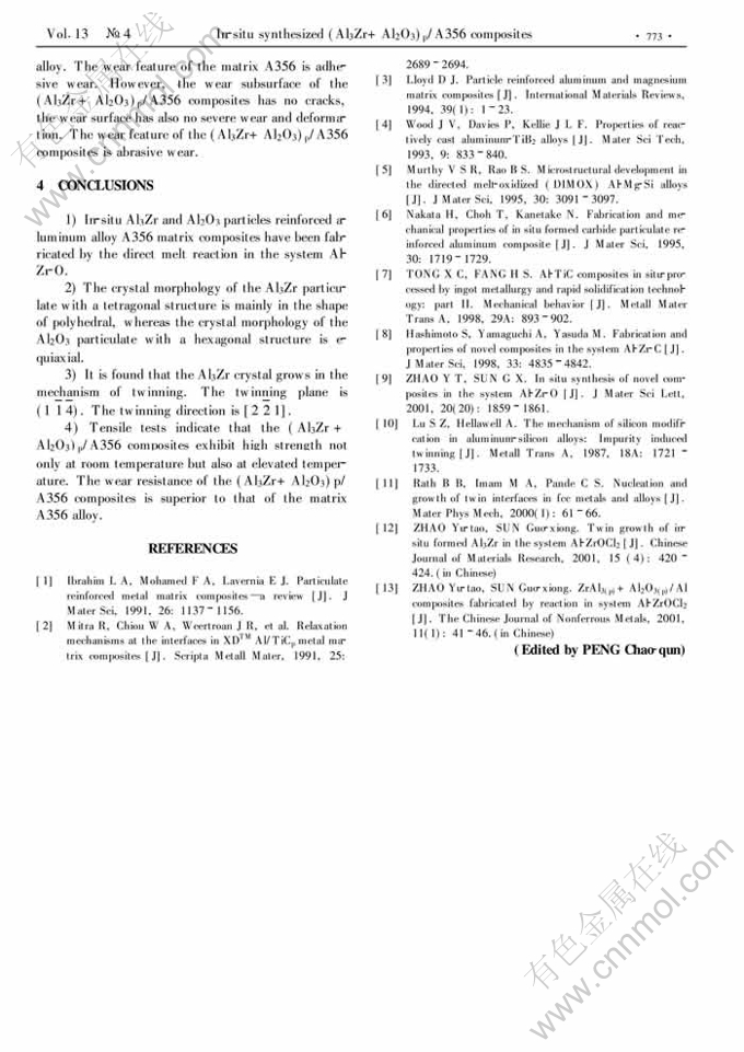 来源期刊:中国有色金属学报(英文版)2003年第4期