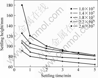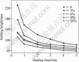 调整苯乙烯的加入量进行上述合成反应,制得一系列含不同量苯环结构的聚合物,沉降过程中不同时刻压缩带高度如图5所示。