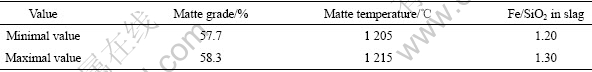 1) 遗传算法与神经网络技术的结合在铜闪速熔炼过程的控制优化中应用是可行的,能有效解决铜闪速熔炼过程高温、炉型及反应复杂、因素多变而不确定、难以建立工业在线控制机理模型的问题。