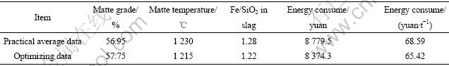 Table 4 Comparison between optimizing data and practical data under the same condition of mass and composition of concentrate