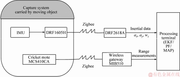 Generally, capture system and processing terminal are two most vital parts of our model, as shown in Figure 1. With help of known position, the information, inertial measurement is capable to be corrected by the model, from the shifting object to anchors. The range measurement also needs to be corrected.
