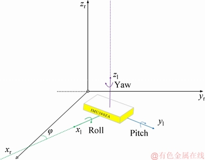 represents the angle between the local coordinate system and the reference coordinate system now, which is also the heading angle that researches are expected to describe below.
