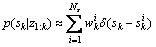 Particle filter, a sub-optimal Bayesian filter is one kind of sequential MC method. Then, these samples and weights elicit the estimate. The samples are also named particles. They motivate the particle filter approach. Especially, MC formulas approach to probability density function expressed by posterior when the number of particles approaches ∞. s0:k={si, i=0, …, k} describes time state set. z1:k={zj, j=1, …, k} represents measurements set from steps 1 to k. Apart from this, we approximately model the posterior filtered probability