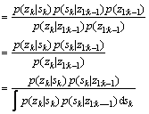 Hence, we tend to substitute Eq. (8) for a simplifier form. We only take the states at the (k-1)-th time interval into account with large posterior probability