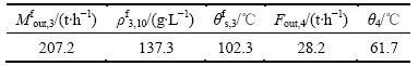 模型搭建完成后,取某工厂某一时刻流量、温度和压力的报表数据作为模型的输入,并用仿真结果和报表数据进行对比。现场的流量温度和质量浓度数据如表1所示,仿真结果如表2所示。
