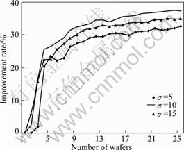 2) The TE algorithm achieves steady improvement rates compared with the ND algorithm while the number of wafers is large, eg. more than 22 in the simulation experiment.