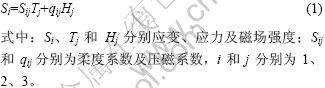 有限元计算软件包ANSYS可以对结构、热、流体及电磁场等多物理场进行分析,可以处理弹性体、非弹性体、流体、磁体及压电体的多物理场耦合问题,但它不能直接用于分析磁致伸缩效应,考虑到磁致伸缩材料在外磁场作用下的应力一应变本构关系为[13]