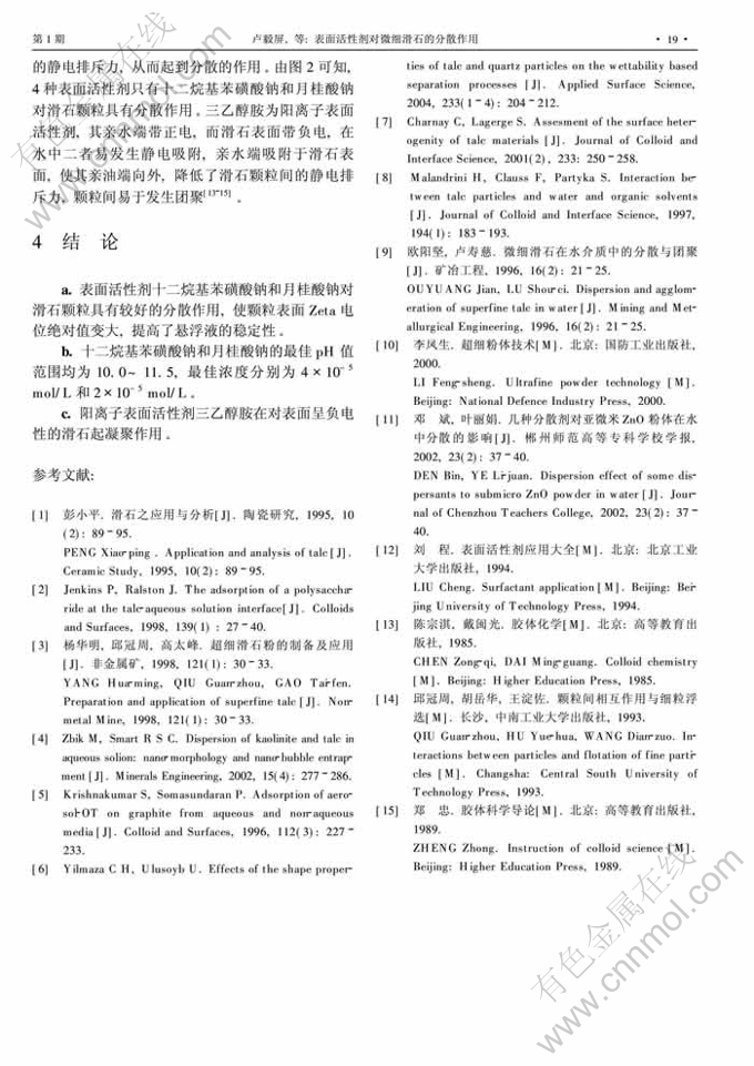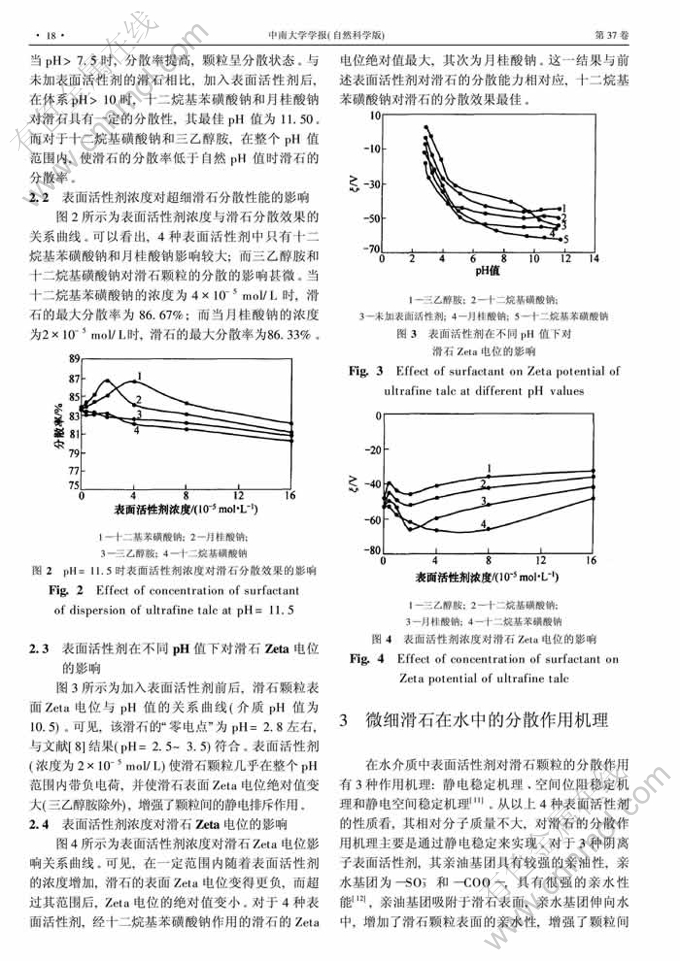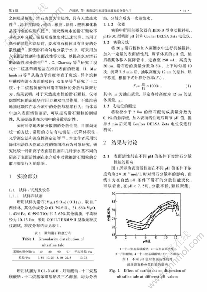 关键词:微细滑石;水介质;表面活性剂;分散机理