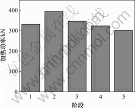 根据实际情况,硬质合金压力烧结炉不同阶段的加热功率优化结果如图4所示,优化后的硬质合金压力烧结炉温度分布如图5所示。基于上述原理所开发的操作优化智能决策支持系统在某硬质合金压力烧结炉上运行近1 a,结果表明: