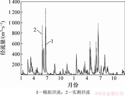 (1) 萨克拉门托模型对该地区的径流模拟结果与实际径流比较吻合,枯水期的径流模拟效果要好于丰水期的。丰水期存在模型低估实际径流的现象。