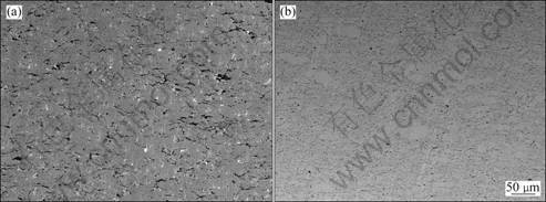 Fig. 2 SEM images of copper matrix composite: (a) 10% graphite; (b) 10% CNTs