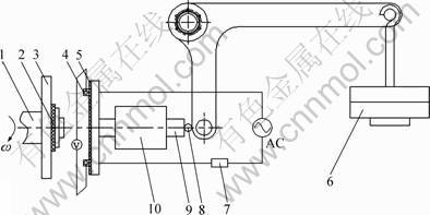 Fig. 3 Schematic drawing of load system: 1—Insulated sheath; 2—Insulated nylon; 3—Disk; 4—Pin; 5—Bakelite; 6—Poise; 7—Electric current sense organ; 8—Press sense organ; 9—Axis; 10—Backstop