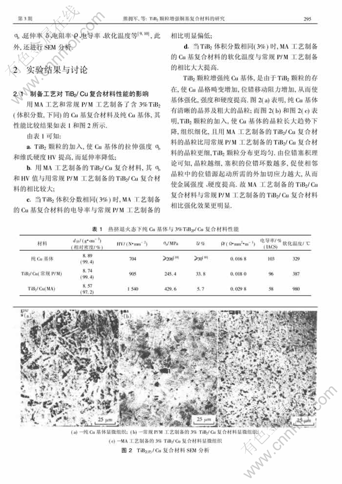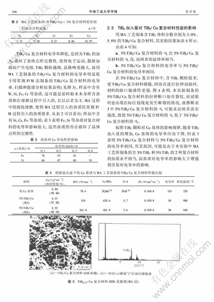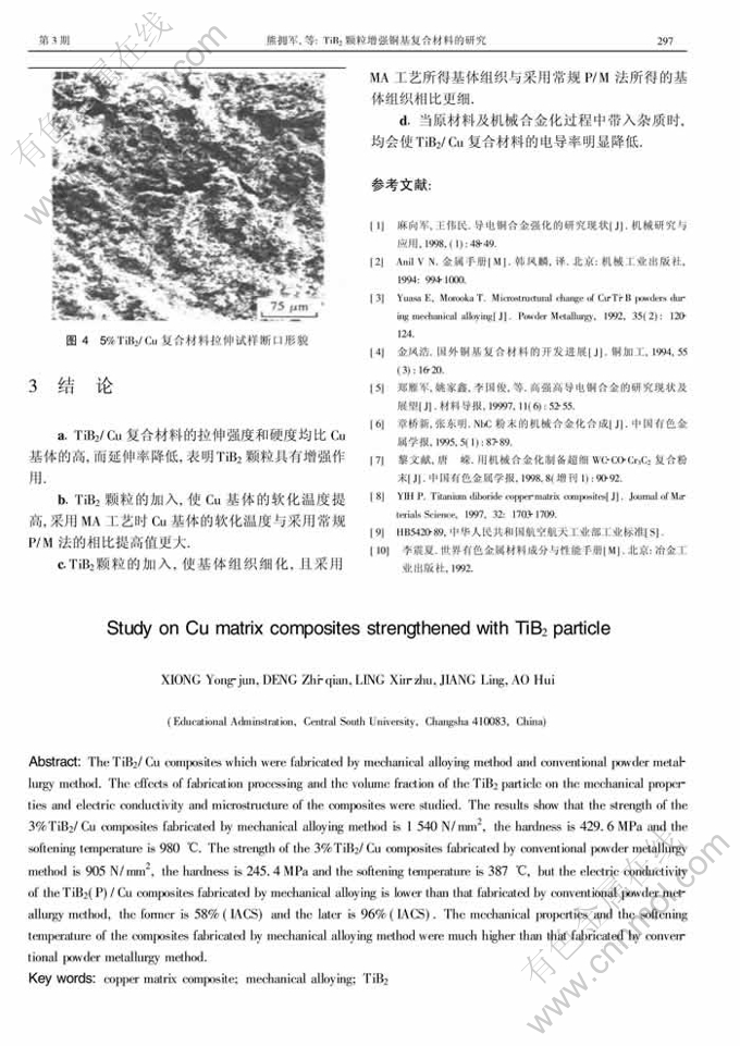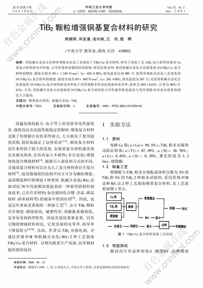 Key words:copper matrix composite; mechanical alloying; TiB2