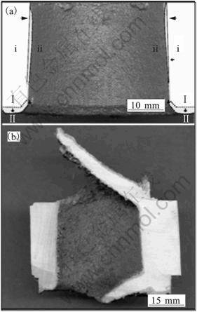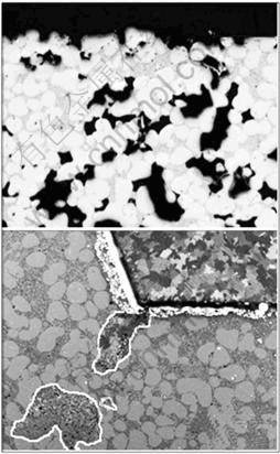 Fig.5Morphologies showing porous surface layer of POM-cores (a) and alloyed up zinc(b)