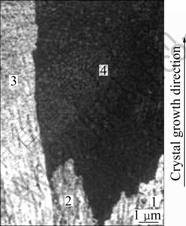 At the beginning of solidification the microstructure of Al-Si alloy rod (sample 1) is shown in Fig.1. The orientation results of crystals 1-4 in Fig.1 are shown in