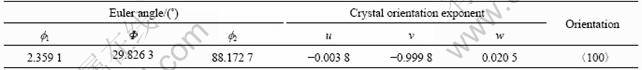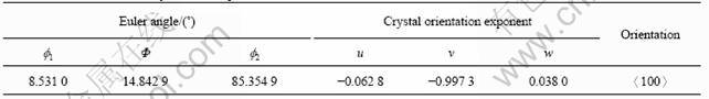 , originate from the initial〈100〉single crystal. Thus the polycrystal forms again, as shown in Fig.3. In succedent growing process, the crystals adjacent to〈100〉orientation preferentially grow, and crystals deviate from 〈100〉orientation retards. At the same time new crystals adjust their orientations and tend to concentrate to〈100〉direction. And single crystal can be obtained at last, as shown in Fig.4. The crystal orientation data are listed in Table 4.