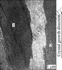 When the withdrawal velocity increases from 3.0 mm/min to 3.4 mm/min columnar polycrystal generates again (see sample 3). Fig.3 shows the microstructure of sample 3. The orientations of the crystals are shown in Table 3.