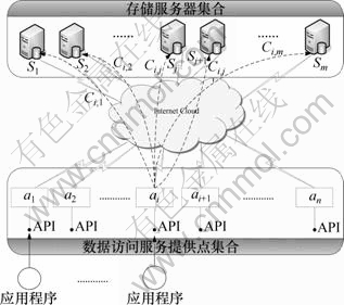图1中,云存储系统由分布在多个地点的存储服务器组成,服务器的集合记作S,各存储服务器