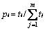将应用程序在服务提供点i访问某数据的次数记为ti,则pi计算方法为: