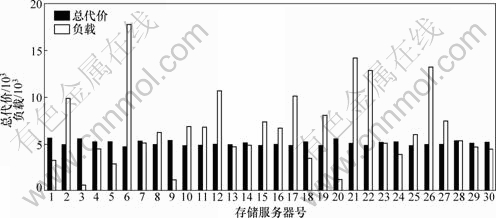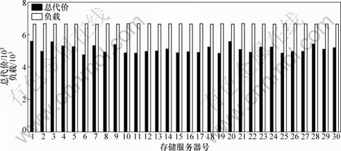 从图3可以看出,总代价较小的存储服务器其承担的副本存储任务较重。虽有一定的合理性,但负载分布过于不均衡。