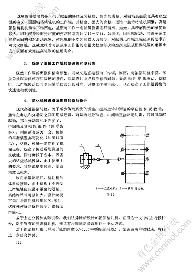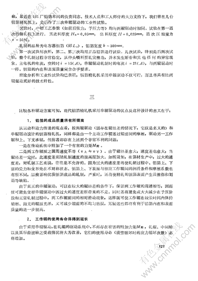 关键词:铝箔轧机; 工作辊直径; 单辊驱动; 精轧机; 铝箔轧制; 人字齿轮轴; 轧辊; 中间轴; 附加力矩; 理论分析