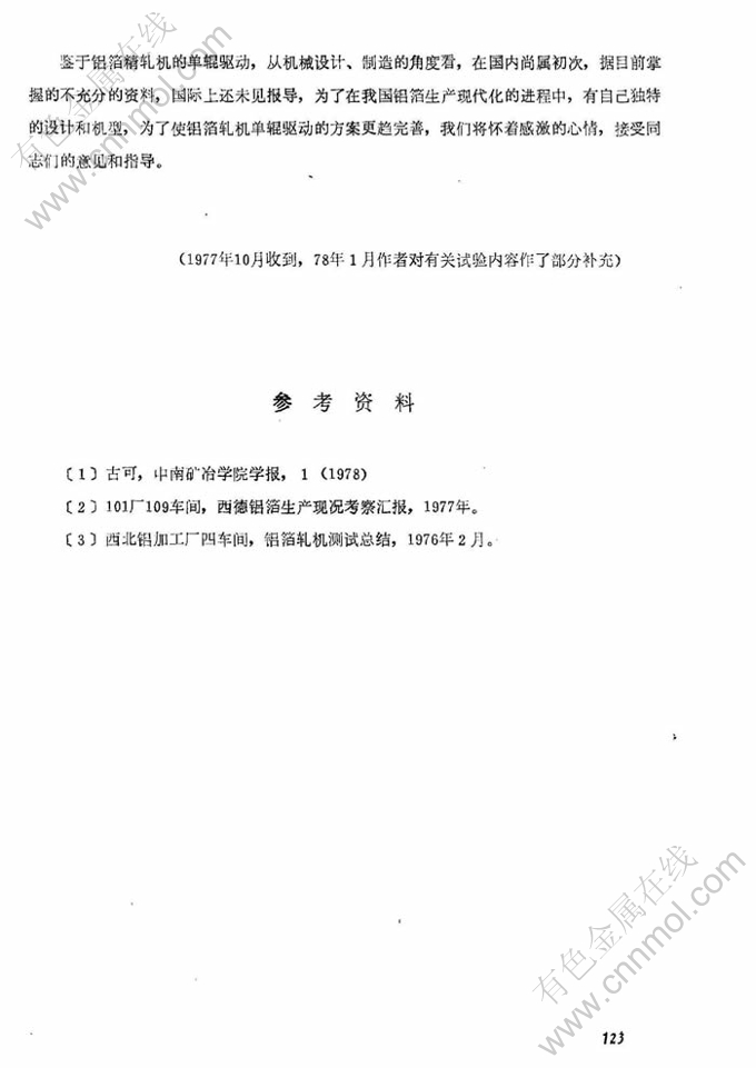 摘 要:现代的和老式的铝箔轧机均普遍采用两辊驱动,但理论分析和试验研究表明,它不是合理的最佳的驱动方案。对于铝箔精轧机来讲,宜采用单辊驱动的新型方案。本文从分析现有两辊驱动的铝箔轧机出发,对无辊缝轧制提出了新的概念和总结了某些客观规律,并为单辊驱动的铝箔轧机设计和应用提供了理论依据。