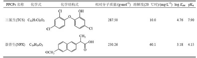 Table 1 Selected physical and chemical properties of TCS and NPX