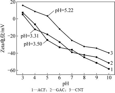 Fig. 4 Zeta potential of three carbon-based materials as a function of pH