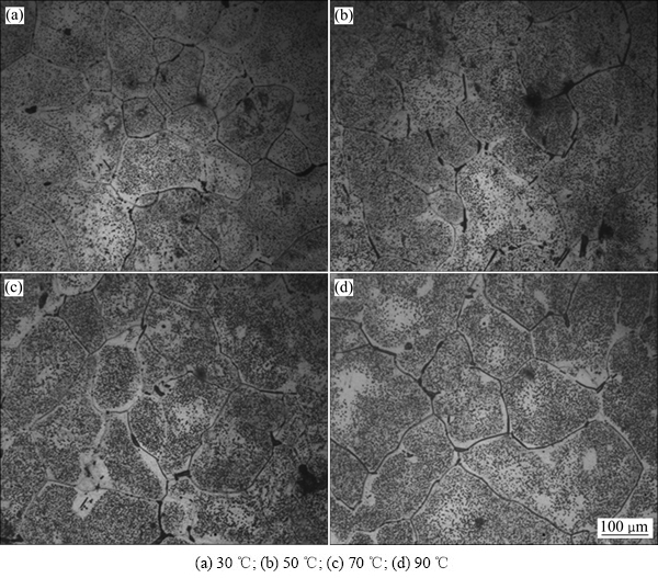 Fig. 2 Aging metallographs of aging samples water-quenched at different temperatures