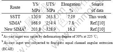 Table 1 Mechanical properties of AZ91D magnesium alloy produced by SSTT route in comparison with data from other routes