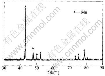 本研究所用电解金属锰片由湖南省冶金材料研究所提供, 其主要化学组成成分为99.71%Mn, 0.125%Fe, 0.014%Al, 0.085%Si, 0.025%C, 0.009%P, 0.032%S(质量分数)。 原料的X射线衍射谱如图1所示。