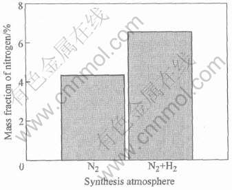 Fig.4 Effect of synthesis atmosphere on nitrogen content of products