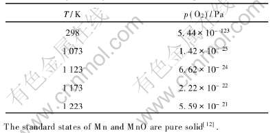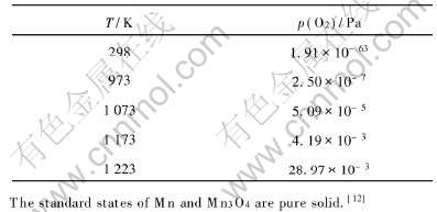 表2 不同温度时由MnO生成Mn3O4的平衡氧分压