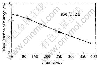 Fig.6 Effect of grain size on nitrogen content of synthesized products
