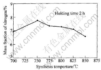 Fig.7 Effect of sythesis temperature on nitrogen content of products