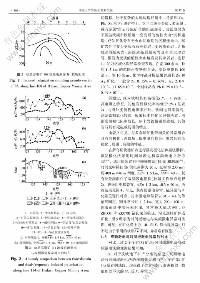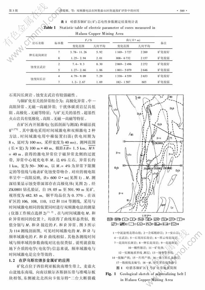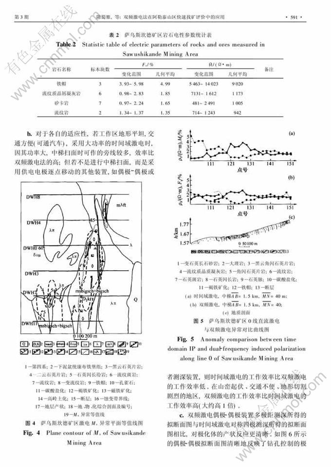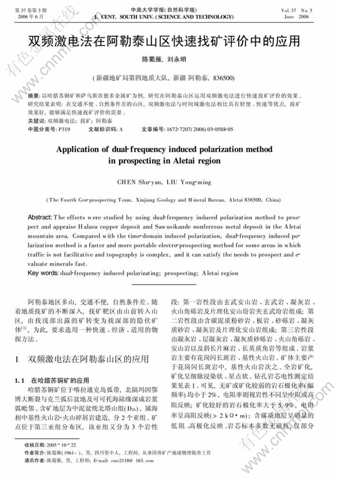 Key words:dual-frequency induced polarizating; prospecting; Aletai region