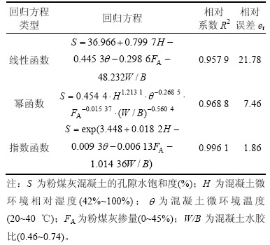 Table 3 Regression equations of pore water saturation in fly ash concrete