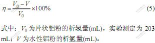在0.5 g水性铝粉或片状铝粉中加入20 mL浓度为0.1 mol/L的盐酸,测量30 ℃下24 h的析氢量,缓蚀效率(η)的计算如下: