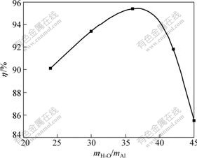 Fig.3 Effect of water dosage on corrosion inhibiting efficiency