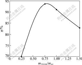 Fig.1 Effect of TEOS dosage on corrosion inhibiting efficiency