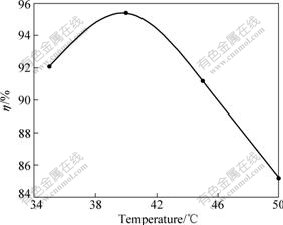 Fig.5 Effect of reaction temperature on corrosion inhibiting efficiency