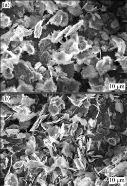 Fig.7 Surface morphologies of waterborne aluminum powders (a) and flaky aluminum powders (b)