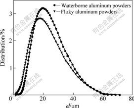 Fig.8 Particle size distributions of waterborne aluminum powders and flaky aluminum powders