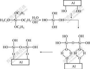 首先,在碱性条件下TEOS发生水解反应,生成硅醇,然后硅醇的羟基与铝表面的羟基之间形成氢键。最后,在加热条件下,硅醇的羟基和铝表面的羟基发生缩合反应,形成Si—O—Al。